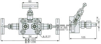 SF-2B型一體化三閥組由二只取壓閥與平衡閥組成,可與EJA、115Ⅰ等差變送器直接連接,導(dǎo)通或斷開測量點(diǎn),進(jìn)口為Φ14接管,與引壓管焊接。平衡閥斜置,方便操作。