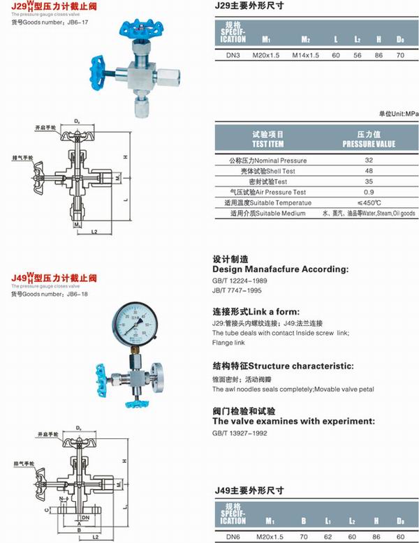 J29H-1.6/32P壓力表針型閥
