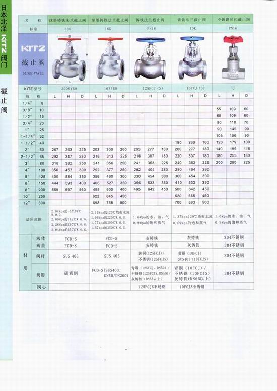 日本北澤KITZ截止閥:截止閥的啟閉件是塞形的閥瓣,密封面呈平面或錐面,閥瓣沿流體的中心線作直線運(yùn)動。閥桿的運(yùn)動形式,有升降桿式(閥桿升降,手輪不升降),也有升降旋轉(zhuǎn)桿式(手輪與閥桿一起旋轉(zhuǎn)升降,螺母設(shè)在閥體上)。截止閥只適用于全開和全關(guān),不允許作調(diào)節(jié)和節(jié)流。