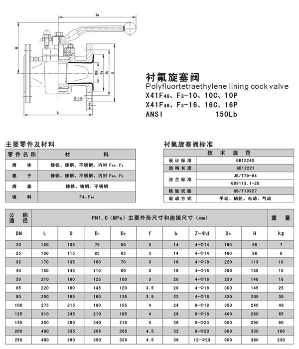 X43F46襯氟旋塞閥是用帶通孔的塞體作啟閉件,塞體隨閥桿轉(zhuǎn)動,以實(shí)現(xiàn)啟閉動作的閥門。旋塞閥啟閉迅速、流體阻力小�;鞠盗杏幸r里旋塞閥(全襯型) 和襯套旋塞閥(半襯型)。旋塞閥多用于截?cái)嘟橘|(zhì)流動,也可分配(三通旋塞閥)。襯氟旋塞閥是為了適應(yīng)一些具有強(qiáng)酸、強(qiáng)堿的腐蝕性環(huán)境,石油、化工、食品等多個特殊領(lǐng)域的需要,在常規(guī)旋塞閥的閥內(nèi)和閥板上襯聚四氟,使介質(zhì)和閥體隔離,達(dá)到防腐的效果。襯氟旋塞閥在常規(guī)條件下可以替代不銹鋼閥體,具有更高的性價(jià)比。特別是具有嚴(yán)重腐蝕性介質(zhì)的使用場合,如:硫酸、氫氟酸、磷酸、氯氣、強(qiáng)堿、王水等具有強(qiáng)腐蝕性的介質(zhì)。