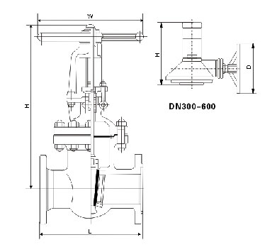 電動(dòng)不銹鋼閘閥-6.4MPa主要連接尺寸